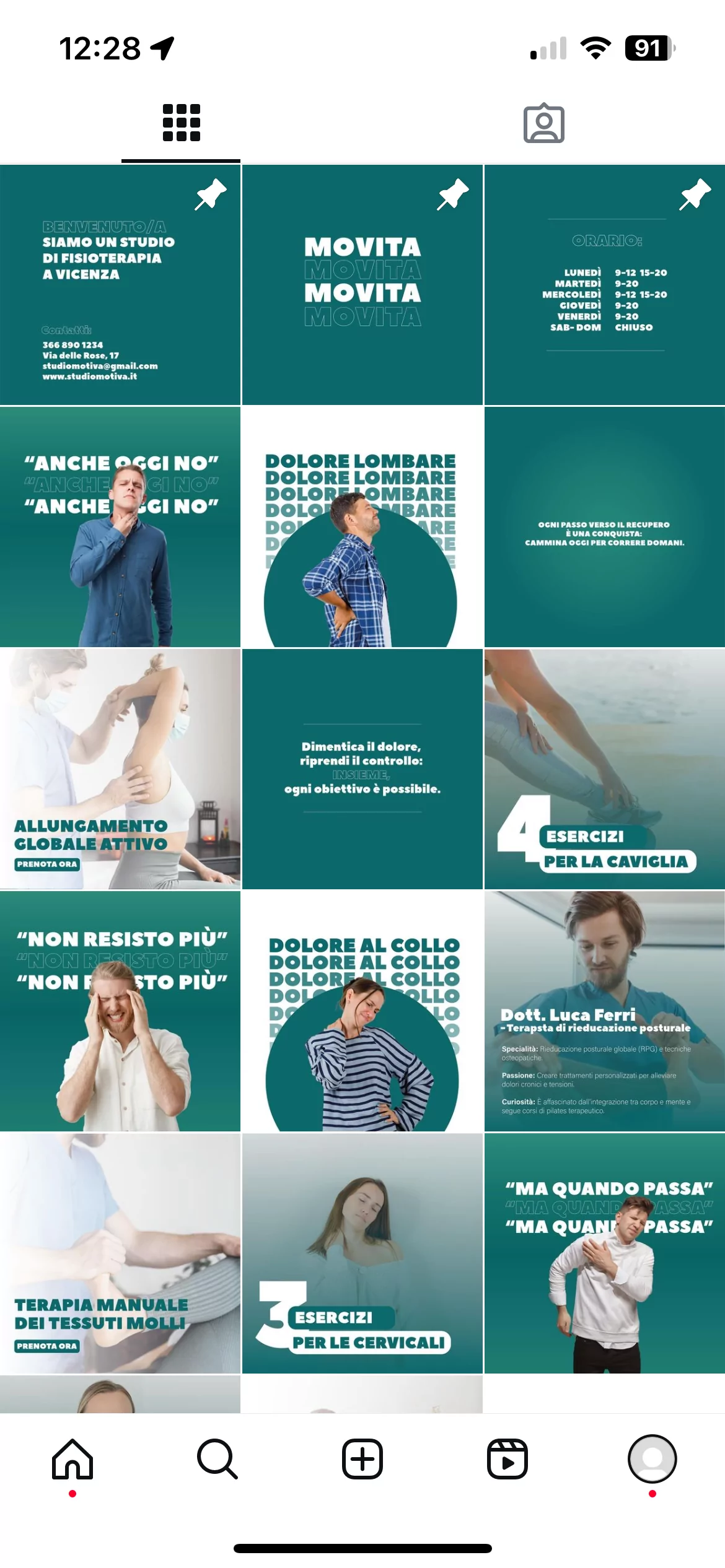 Ho sviluppato un profilo per uno studio di fisioterapia, ideato da zero per il mio portfolio grafico.